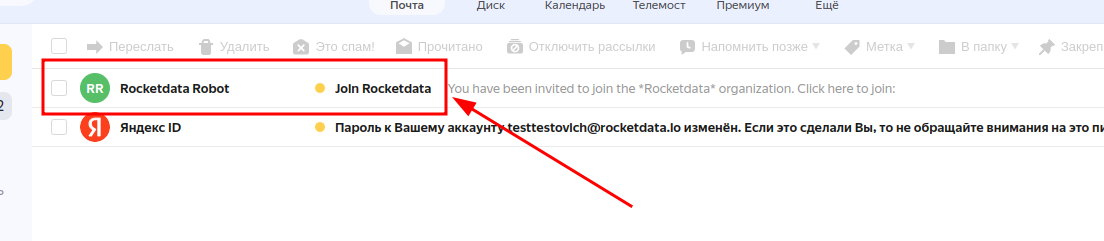 - Сначала на почту должно прийти приглашение присоединиться к организации. Если письма на почте нет, то нужно попросить системного администратора пригласить Вас. Приглашение на почте будет выглядеть следующим образом: