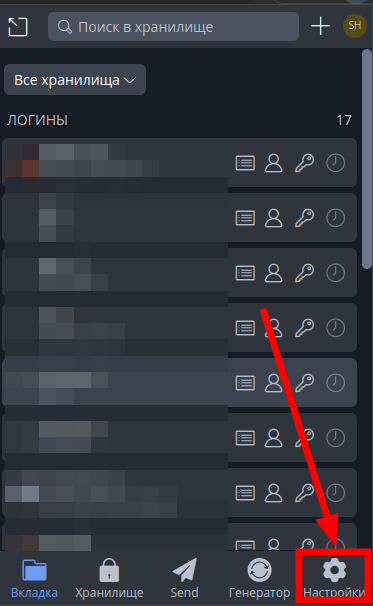 - Для импорта паролей нужно открыть расширение и нажать "Настройки":