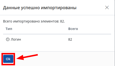 - Должно появится сообщение об успешном импорте данных. Далее нужно нажать "Ок":