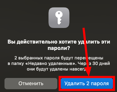 Откроется окно, запрашивающее подтверждение удаления паролей. В нем нужно нажать "Удалить ...":